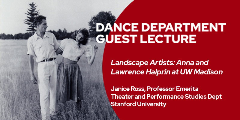 This lecture was made possible by the University of Wisconsin-Madison Dance Department with funding from the Anonymous Fund. Co-sponsors include the Department of Planning and Landscape Architecture and the Mosse/Weinstein Center for Jewish Studies. Photo above: Anna and Lawrence Halprin in a Meadow, Wisconsin, 1940.